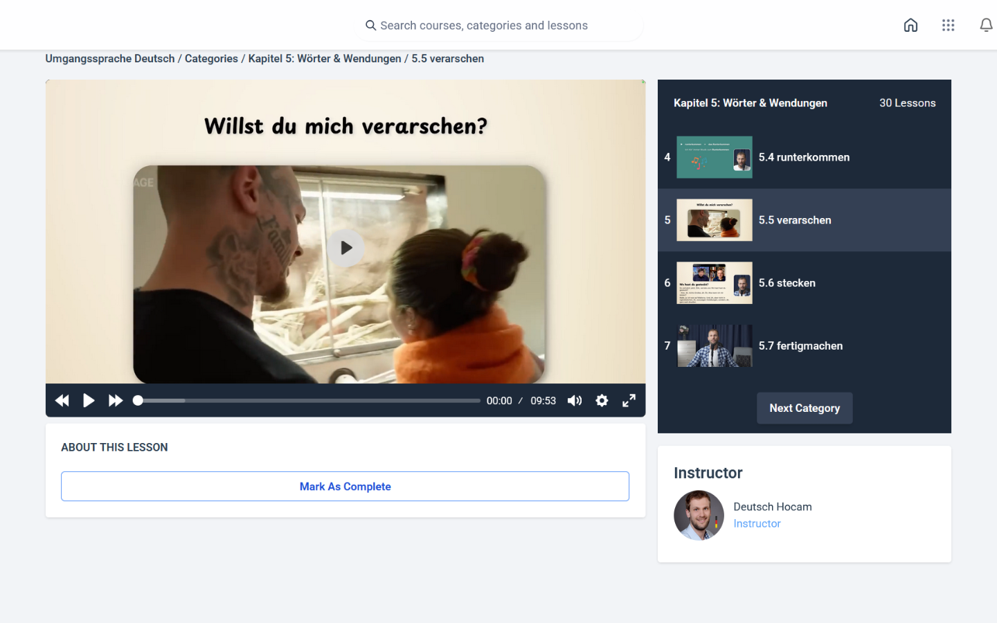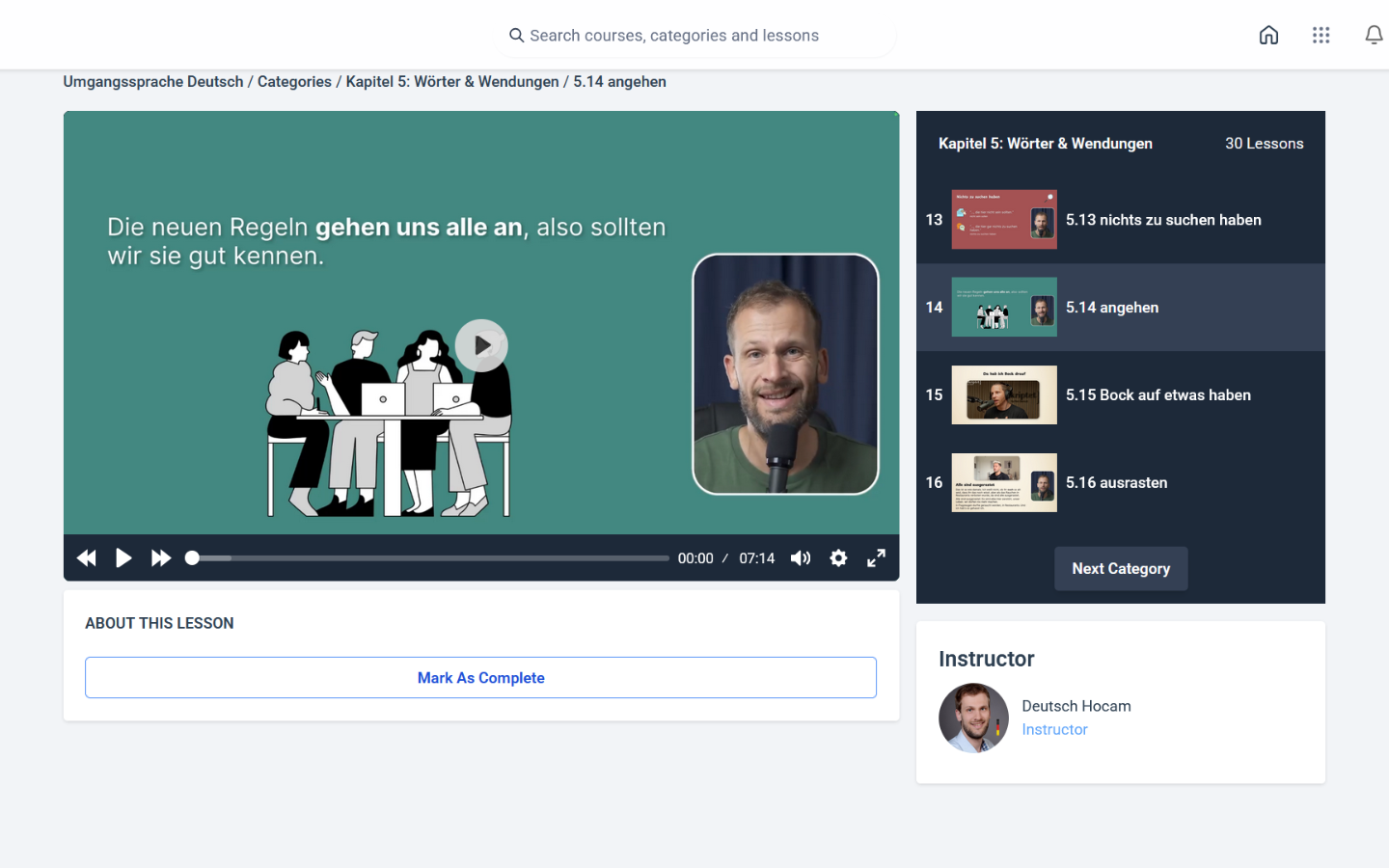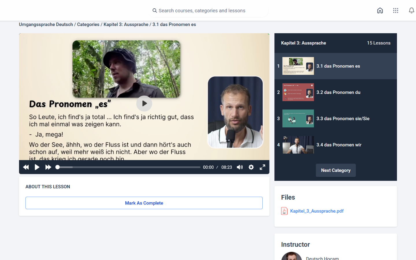 Sürükleyici yöntemimiz sayesinde nihayet Almanca konuşma dilini öğrenmek kolay olacak. Dersler kısa bir video (çoğunlukla) ya da bir diyalog ile başlar.